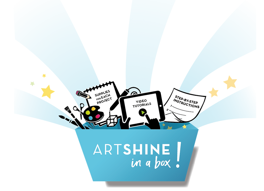 Every 2nd month, a fully-loaded art box is delivered to your home.
